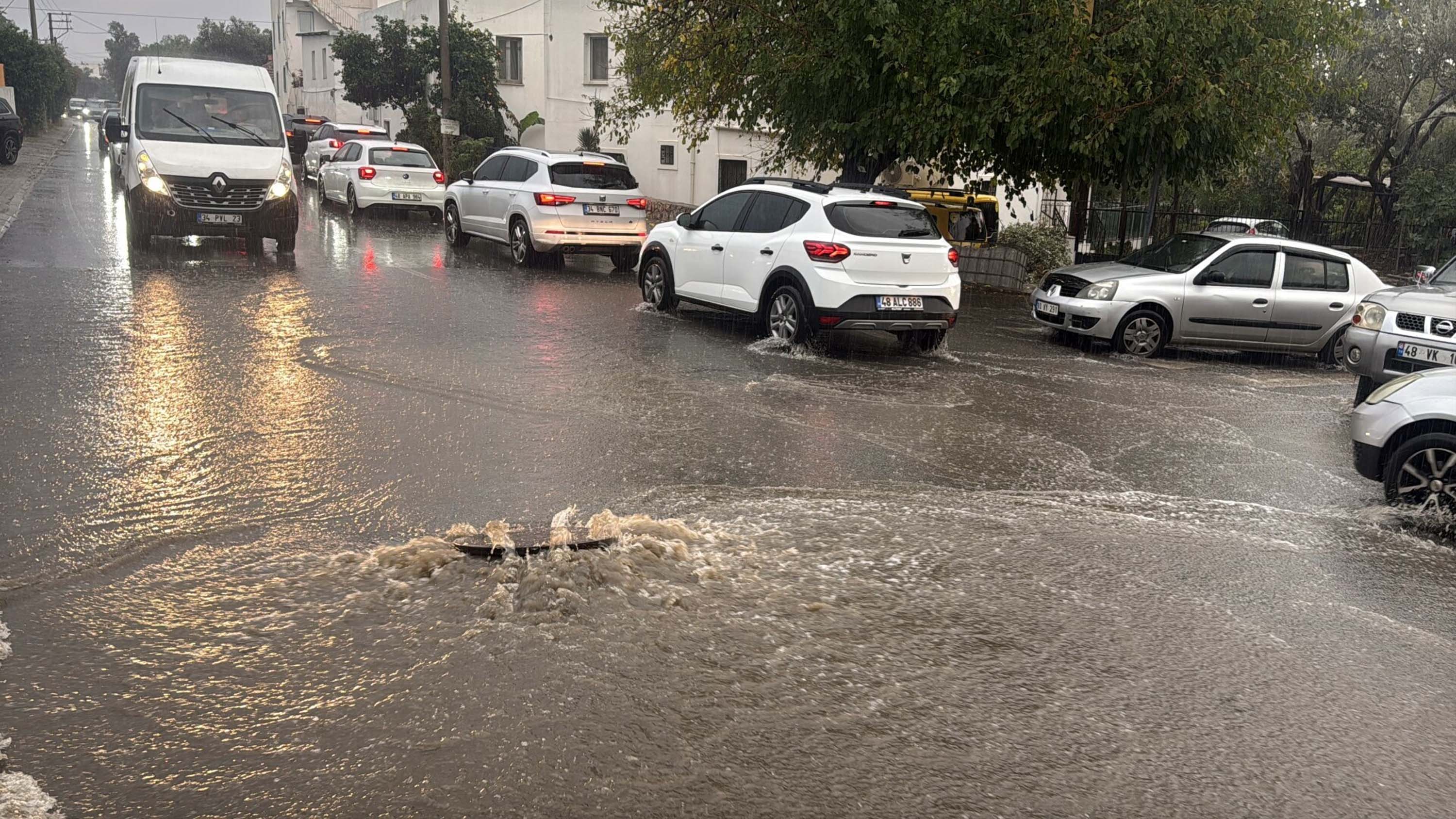 BODRUM’DA ŞİDDETLİ SAĞANAK YOLLARI GÖLE ÇEVİRDİ